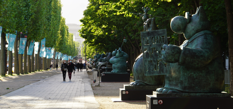 Auf den nahen Champs-Élysées zieht ein Straßenkünstler die Passanten in seinen Bann, andere bleiben lachend vor den Bronzefiguren von Philippe Gelucks Le Chat stehen. Die nahe gelegenen Tuilerien sind jetzt der perfekte Ort für ein abendliches Picknick. Der Parkwächter nimmt es mit den Schließzeiten nicht so genau und gestattet sogar ausnahmsweise, den Garten mit dem Rad zu durchqueren.
