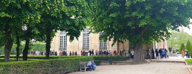 Anders vor dem Musée d’Orsay: um Punkt zehn entsteht vor dem Haupteingang geradezu ein Pulk; über den Seiteneingang geht es schneller hinein. Trotz begrenzter Ticket-Kontingente ist es in der ehemaligen Bahnhofshalle unerwartet voll. Die Gastronomie ist im M‘O noch geschlossen, dafür lädt das Gartencafé des Musée Rodin zur Mittagsrast ein. Beim Verlassen des vielleicht schönsten Museums von Paris bilden die Wartenden ein Spalier. Am Nachmittag entsteht vor dem Eingang eine Schlange, Zeittickets gibt es hier nämlich nicht.
